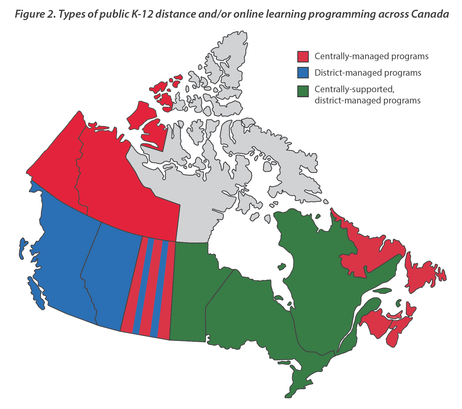 Consistent with the regulatory environments across Canada, there have been no operational changes to the nature of K-12 distance/online learning activity across Canada (see Figure 2).
