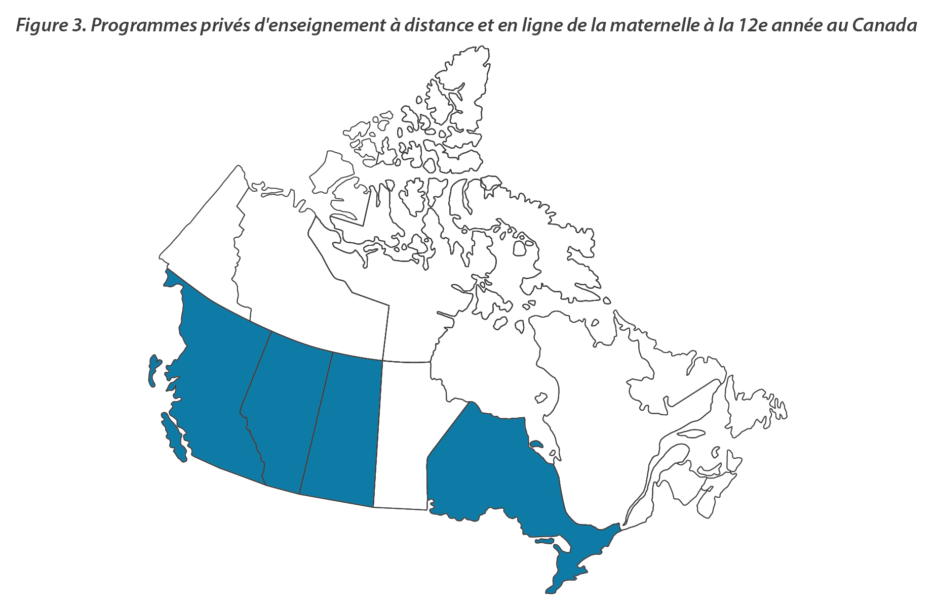 Outre les programmes publics d’enseignement à distance et en ligne, plusieurs juridictions proposent des programmes privés ou indépendants d’enseignement à distance et en ligne pour les élèves de la maternelle à la 12e année (voir figure 3).